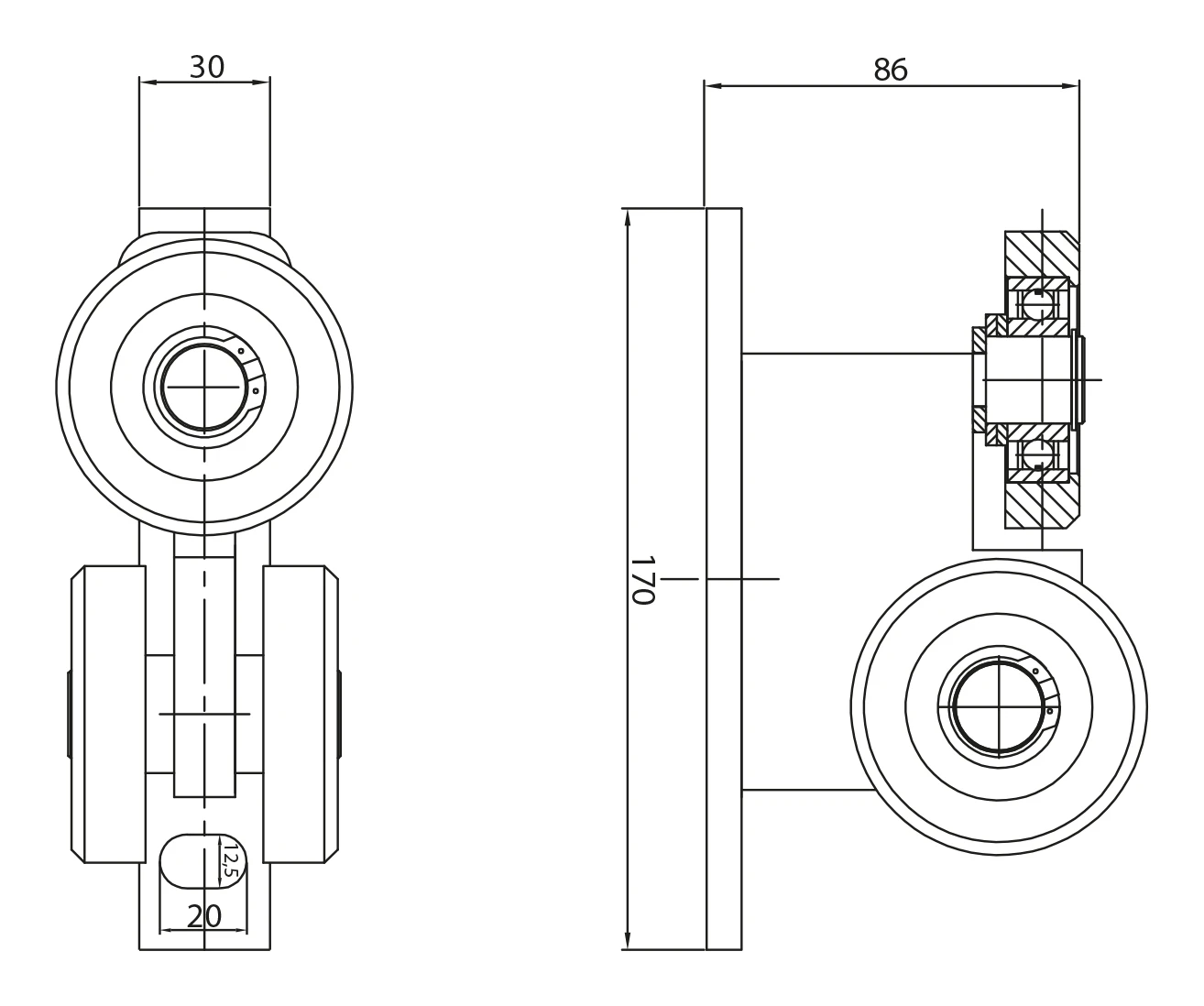 - Breite des oberen Rollenträgers: 30 mm