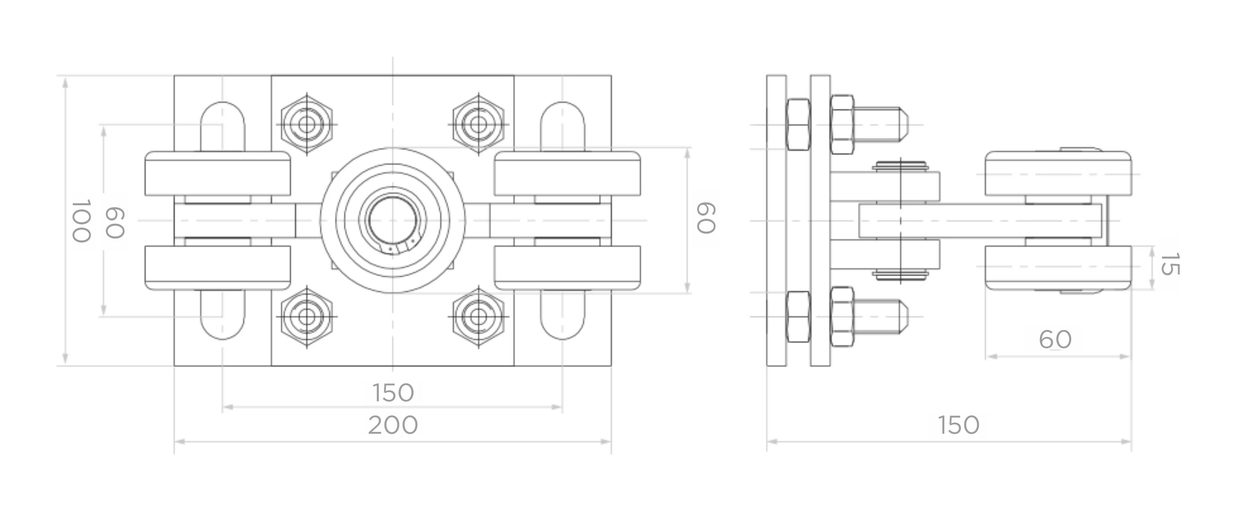- Lochabstand der Montagebohrungen: 150 × 60 mm