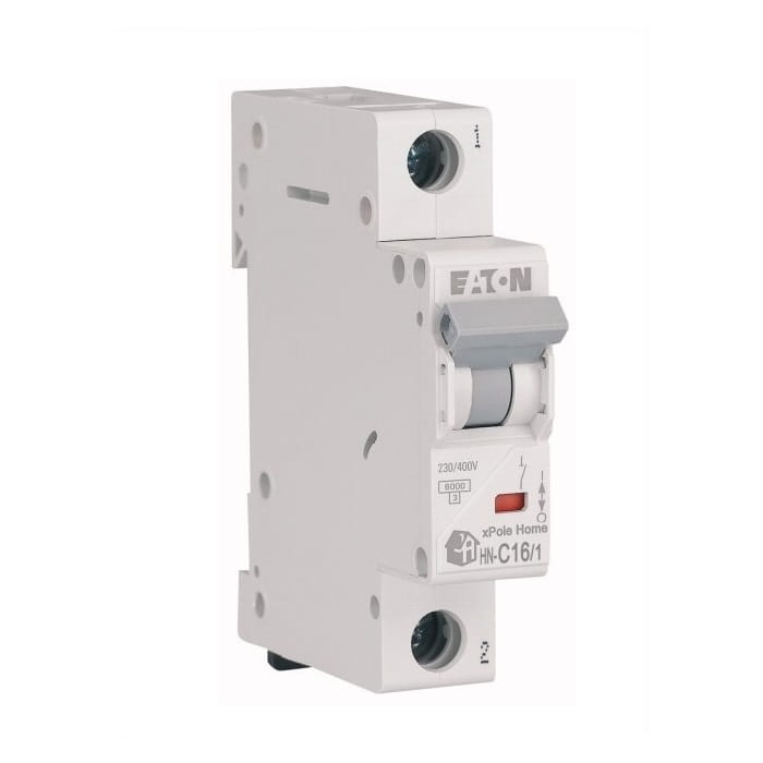 Leitungsschutzschalter C 16A 1P 6kA HN-C16/1 xPole Home 194831 von EATON schützt die elektrische Anlage vor Überlastung und Kurzschluss.