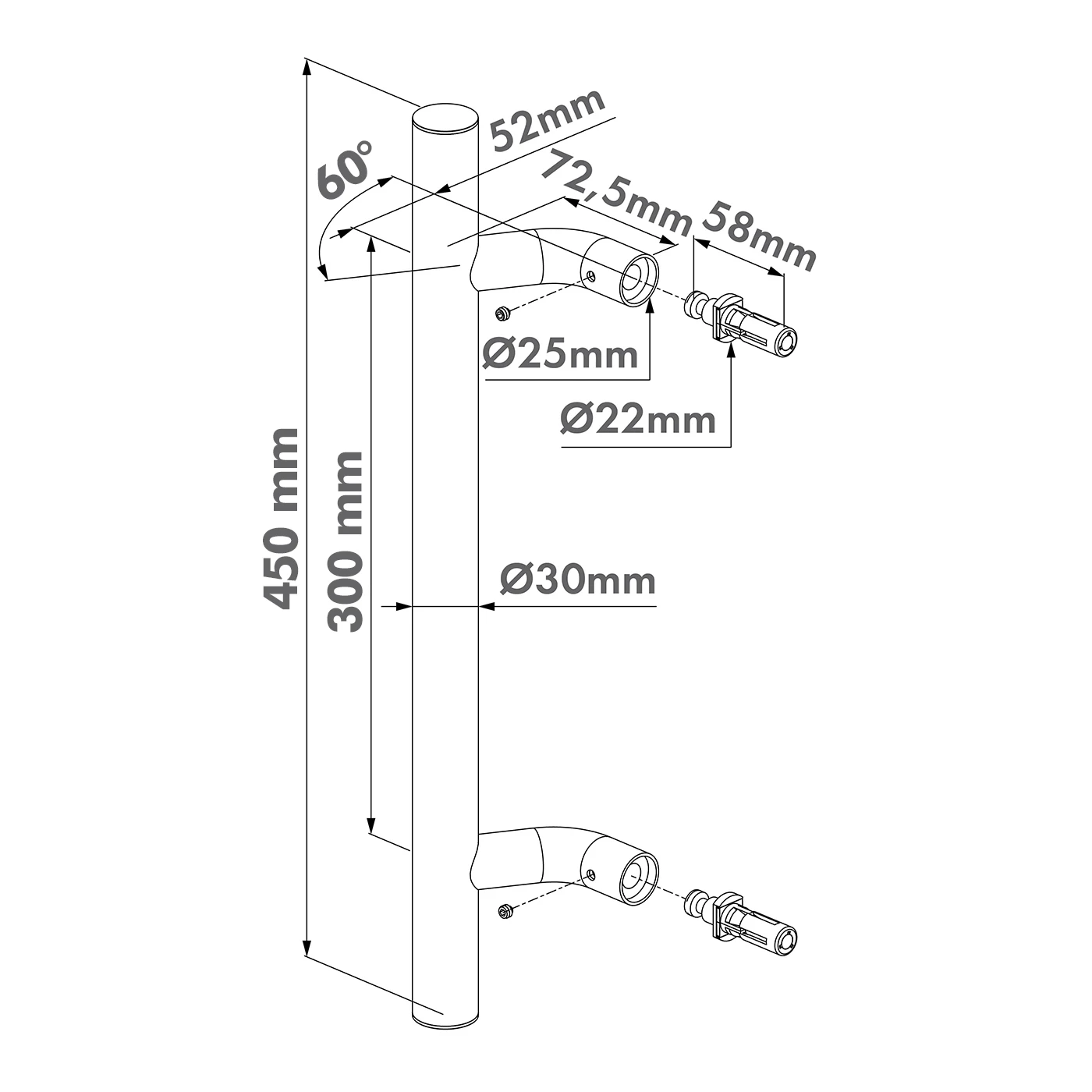 - Durchmesser des Befestigungsarms: Ø25 mm