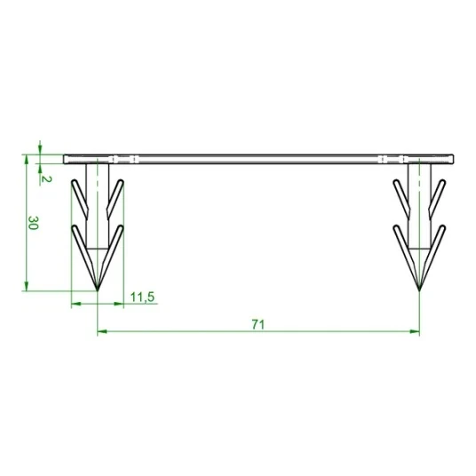 Anwendung – die Klammern sind zur Befestigung von Heizrohren in Systemmatten (thermogeformten Matten) bestimmt. Dank des Abstands von 71 mm eignen sie sich hervorragend für gängige Rohrdurchmesser in Fußbodenheizungen.