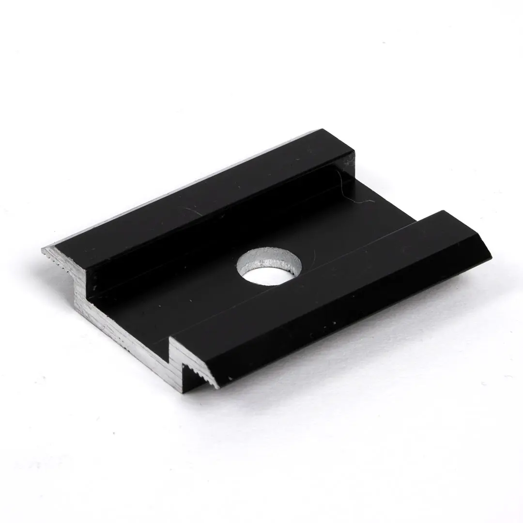Die angebotenen Klemmen sind aus ästhetischen Gründen schwarz eloxiert. Die Eloxierung verbessert auch die Haltbarkeit des Bauteils und erhöht seine Widerstandsfähigkeit gegenüber Umwelteinflüssen.