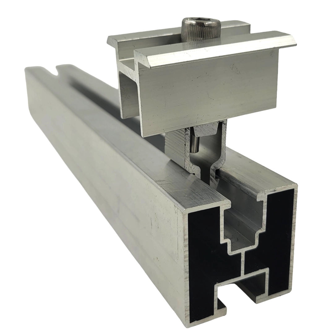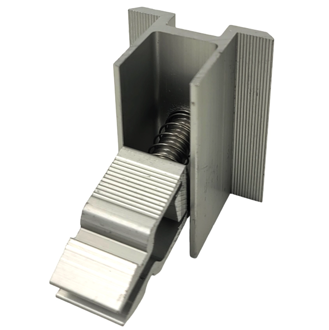 Die Mittelklemme mit Klickverschluss und Schraube ist ein integraler Bestandteil der Solarmodul-Montage. Die Mittelklemme ist eine Montagekomponente für Photovoltaik-Montagen und wird zur Befestigung des Photovoltaik-Paneels am Aluminium-Strukturprofil verwendet. Sie wird für die Montage von Photovoltaikmodulen sowohl auf Flach- als auch auf Schrägdächern verwendet.