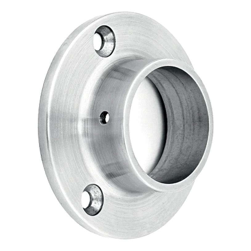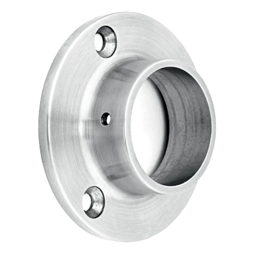Der Flansch dient zur Befestigung von Geländerhandläufen an der Wand mittels Gewinde M8. Die axiale Montageart gewährleistet eine stabile und ästhetische Verbindung des Rohres mit dem Untergrund. Drei Montagelöcher im Flansch ermöglichen eine sichere Verschraubung des Elements, und eine seitliche Öffnung für eine Klemmschraube erlaubt zusätzliche Stabilisierung des Rohres in der Aufnahme.