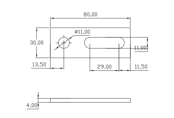 Flacher Montageadapter, Edelstahl H17 1.4016, M10 80x30x4mm, für Photovoltaik-Systeme.