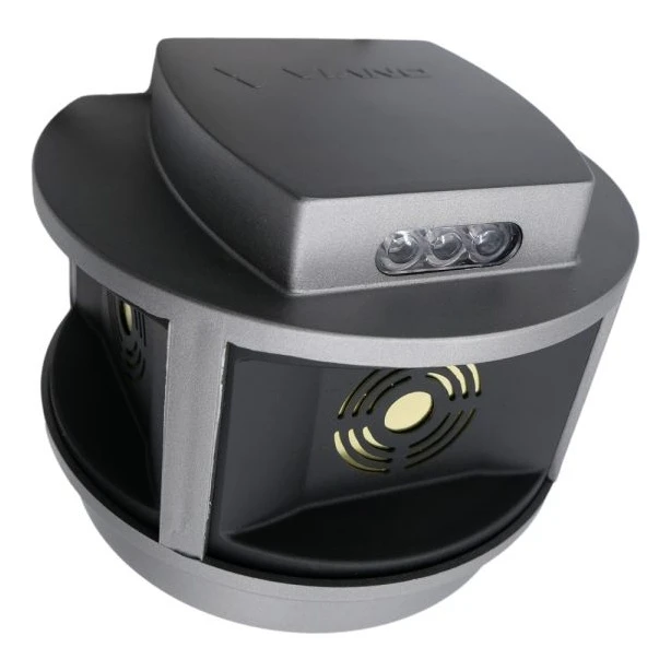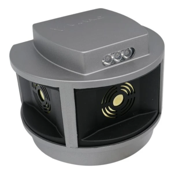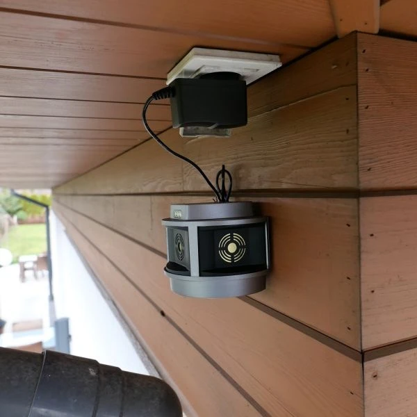 Das Gerät kombiniert zwei Vertreibungsmethoden: kontinuierliche Emission von Ultraschallwellen mit automatischer Frequenzänderung sowie ein Stroboskop-Panel mit hochintensiven LEDs, das durch einen integrierten Bewegungsradar aktiviert wird. Nach Erkennung eines Schädlings erzeugt das Panel eine Serie von fünf intensiven Blitzen pro Sekunde, die den Eindringling zusätzlich verscheuchen.