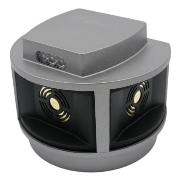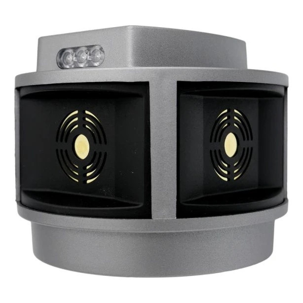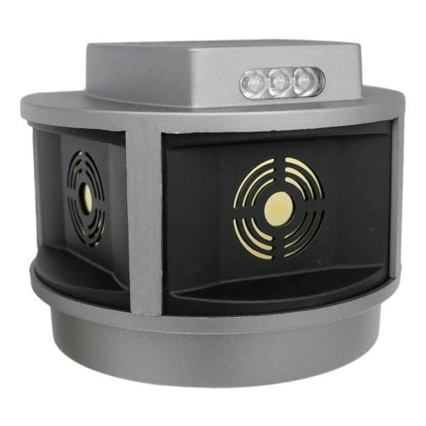 TRIO-STROB ist ein fortschrittlicher Ultraschall-Vertreiber, der Objekte wirksam vor Mardern, Wieseln, Ratten und Mäusen schützt. Drei professionelle piezoelektrische Emitter mit 50 mm Durchmesser, senkrecht in drei Richtungen angeordnet, gewährleisten einen Ultraschall-Abstrahlwinkel von bis zu 270° und eine Reichweite von bis zu 200 Metern, wodurch eine effektive Fläche von bis zu 3000 m2 abgedeckt wird.