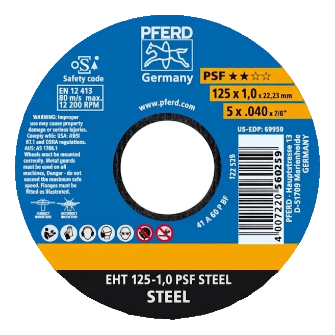 PFERD EHT 125-1,0 PSF Steel – Trennscheibe für Stahl 125 x 1,0 mm - Verpackung 25 Stück