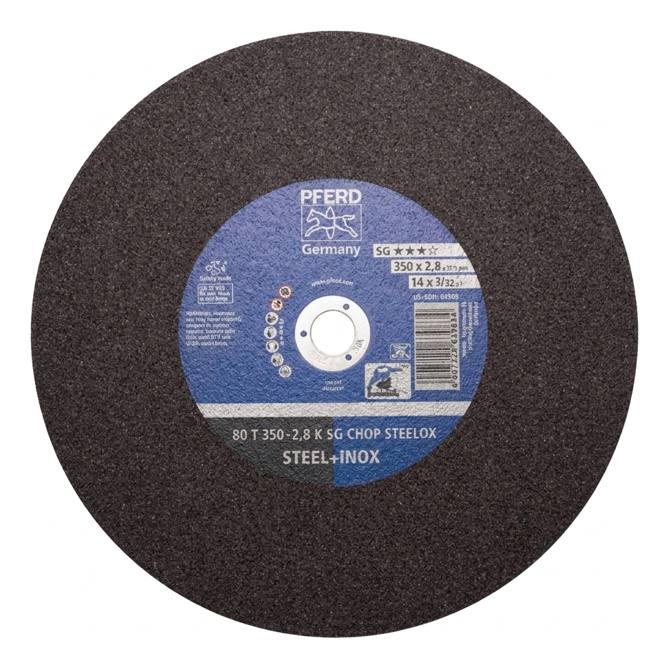 Die Scheibe gehört zur SG (Special Grade) Linie der Firma PFERD — einem deutschen Hersteller mit langjähriger Erfahrung in der Produktion von Schleifwerkzeugen. Die SG Serie zeichnet sich durch erhöhte Haltbarkeit und Schneidleistung im Vergleich zu Standardscheiben aus, was sich direkt in geringerem Verbrauch von Betriebsmitteln und niedrigeren Arbeitskosten der Mannschaft niederschlägt.
