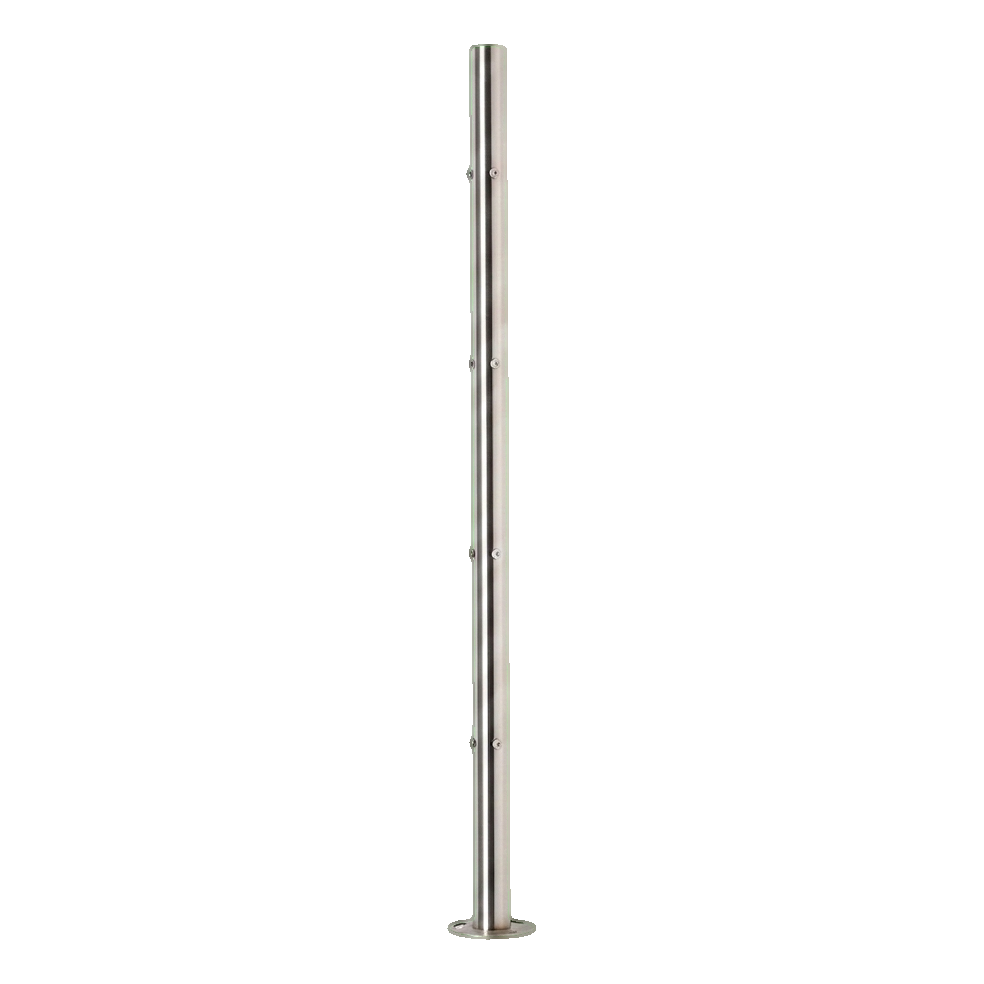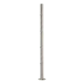 Edelstahl AISI 304 gewährleistet hohe Korrosionsbeständigkeit unter normalen Umgebungsbedingungen, was diesen Pfosten sowohl für Innenanwendungen als auch in begrenztem Umfang für Außenanwendungen geeignet macht (fern von Meeresumgebung und stark chemisch aggressiven Bedingungen).