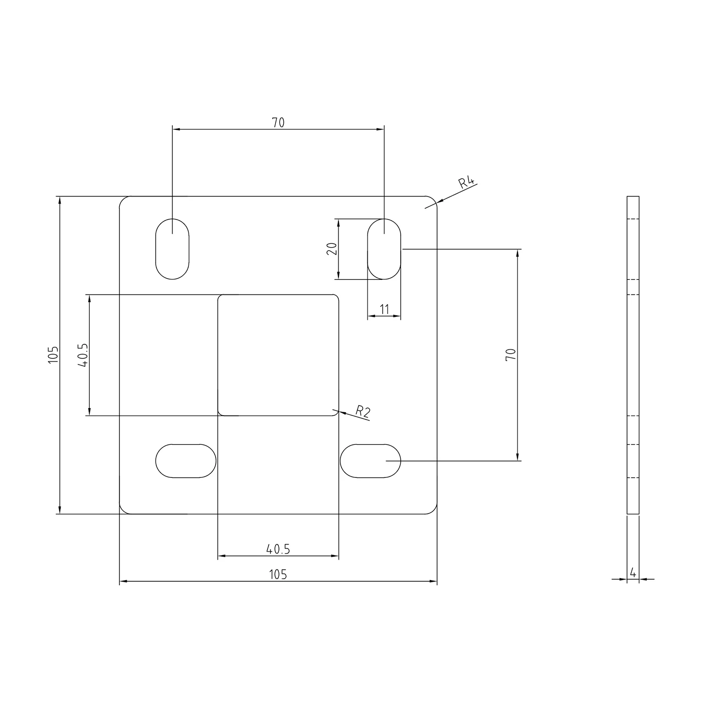 - Abmessungen der Platte: 105×105 mm