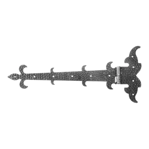 Das Zierbeschlag Bandcharnier rechts POSTAL ist ein stählerner Beschlag mit dekorativem, traditionellem Design, bestimmt für die Montage an Toren, Gartentüren, Holztüren und anderen Konstruktionen, die ein klassisches Finish erfordern. Dank der dekorativen Abschlüsse im Stil heraldischer Lilien sowie der strukturierten Oberfläche mit Hammeroptik verleiht das Scharnier den Objekten einen edlen, handwerklichen Charakter.