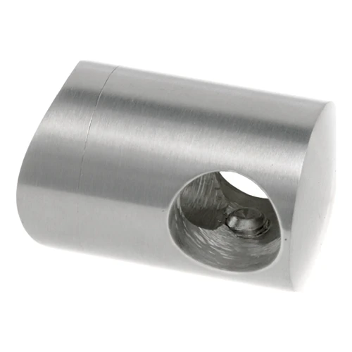 Der Halter wird direkt an der Stütze montiert — der Geländerstab läuft durch die Durchgangsbohrung mit Durchmesser 16 mm, und das Ganze wird mit im Gehäuse versteckten Andruckschrauben gesichert. Dadurch ist die Montage schnell und die Verbindung stabil und dauerhaft.