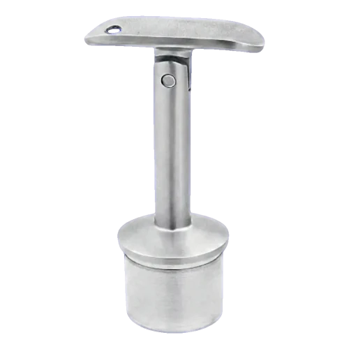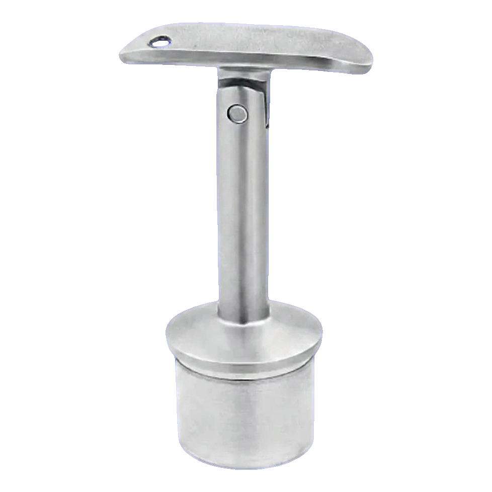 Gelenk-Handlaufhalterung aus Edelstahl AISI 316 zur Verbindung von Balustradenstütze mit Handlauf im 42,4 mm System. Element wird durch Einkleben des Zapfens in das Stützenrohr mit anaerober Klebstoff montiert — der Klebstoff bindet bei Kontakt mit Metall und härtet durch Sauerstoffabschluss aus, was eine dauerhafte und sichere Verbindung ohne Schweißen gewährleistet.