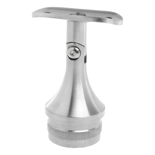 Gelenkige Handlaufstütze für Geländersysteme aus rostfreiem Edelstahl, bestimmt zum Einschlagen in Pfosten mit Durchmesser 42,4 mm. Das verstellbare Gelenk ermöglicht eine stufenlose Einstellung des Handlaufneigungswinkels, was diese Verbindung zur idealen Lösung sowohl für Treppengeländer als auch für Balkongeländer macht, die in verschiedenen Winkeln montiert werden.