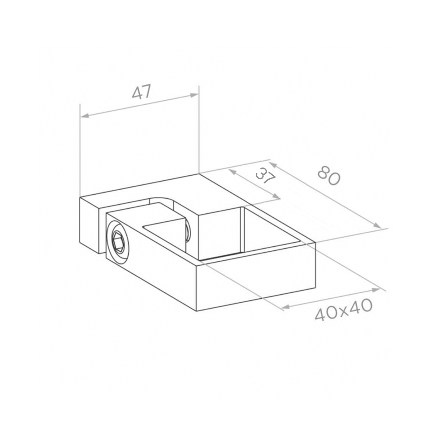Klemmschelle zur seitlichen Befestigung von Geländerpfosten mit Profil 40×40 mm. Element zur Montage in der Wand, Treppenwange oder einer anderen vertikalen Oberfläche — gewährleistet stabile Abstützung des Geländerpfostens für Balkon-, Terrassen- oder Treppengeländer. Gefertigt aus Edelstahl AISI 304 mit satinierter Oberfläche, was hohe Korrosionsbeständigkeit und ein ästhetisches, modernes Aussehen garantiert.