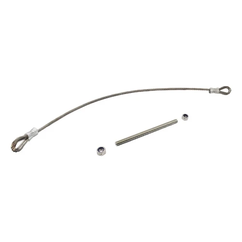 Das Set ist montagebereit — enthält ein Stahlseil mit werkseitig geschmiedeten Ösen an beiden Enden, eine Gewindestange M12 mit einer Länge von 180 mm sowie zwei selbstsichernde Muttern M12. Dadurch muss der Monteur keine separaten Verbindungselemente zusammenstellen, was die Auftragsabwicklung beschleunigt.