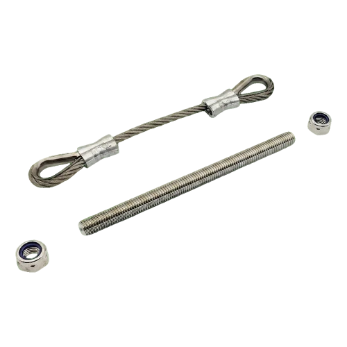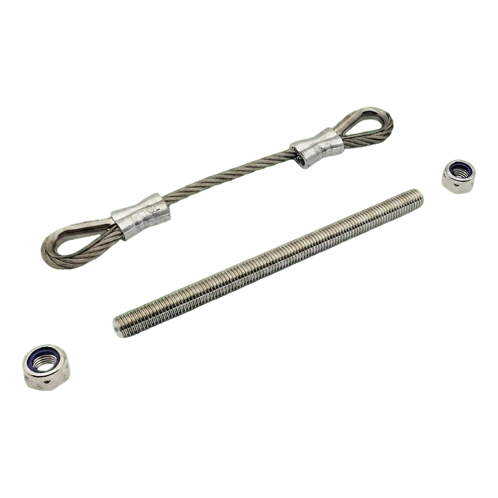 Das vollständig aus Edelstahl gefertigte Seil ist korrosionsbeständig und witterungsbeständig, was eine jahrelange störungsfreie Nutzung garantiert. Die Verwendung gepresster Klemmen an den Seilenden gewährleistet eine dauerhafte und sichere Verbindung der Schlaufen, und die selbstsichernden Muttern eliminieren das Risiko des Selbstlösens durch Vibrationen.