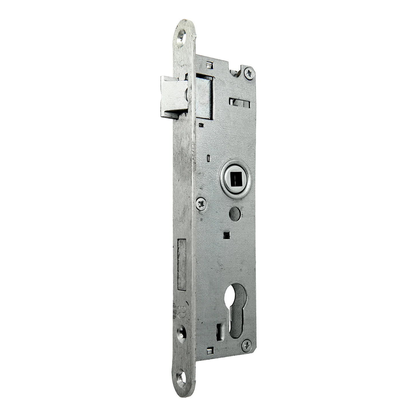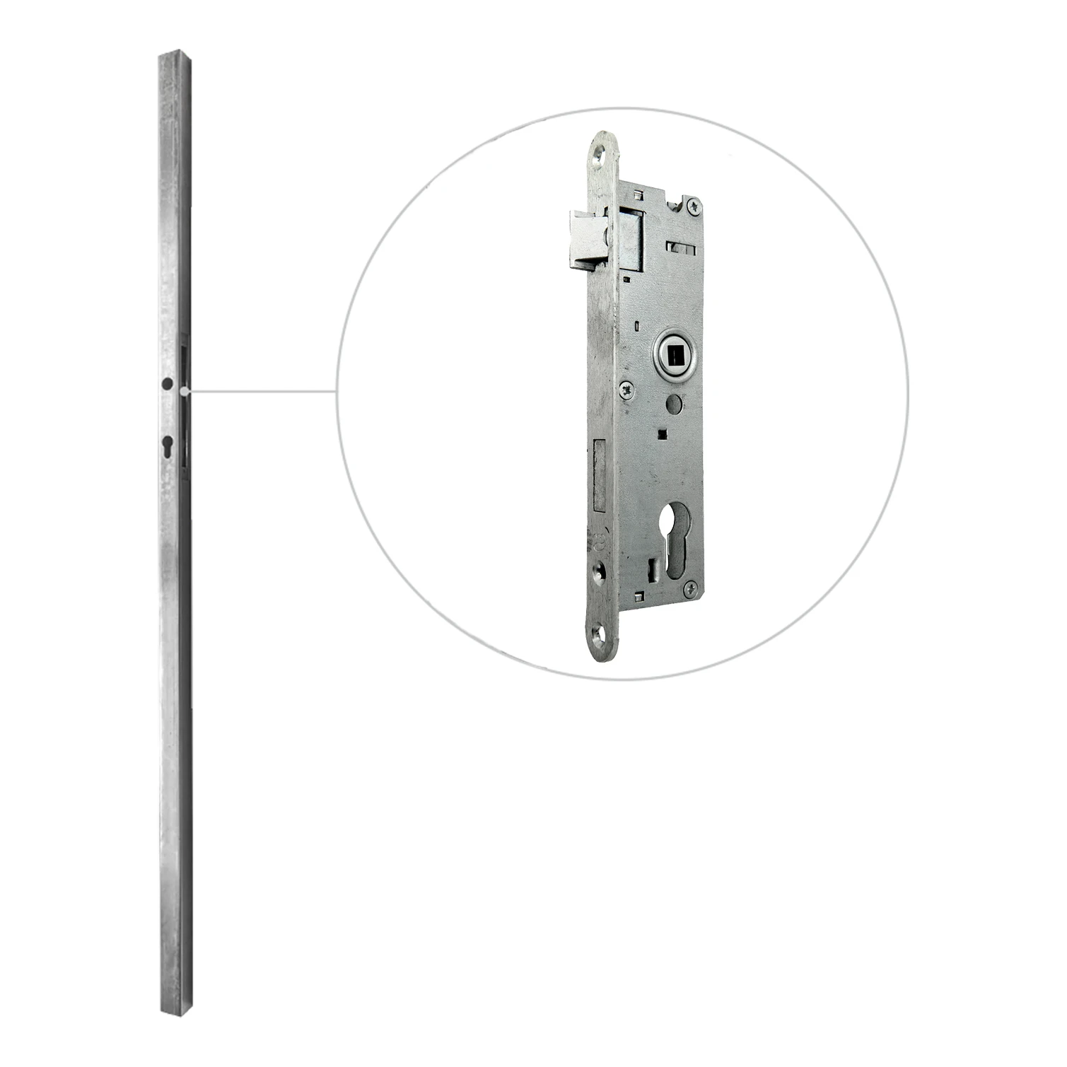 Lieferumfang: kompletter Pfosten mit integrierter Kasette und eingebautem Einlassschloss – montagebereit für die Befestigung und den Einbau der Beschläge.