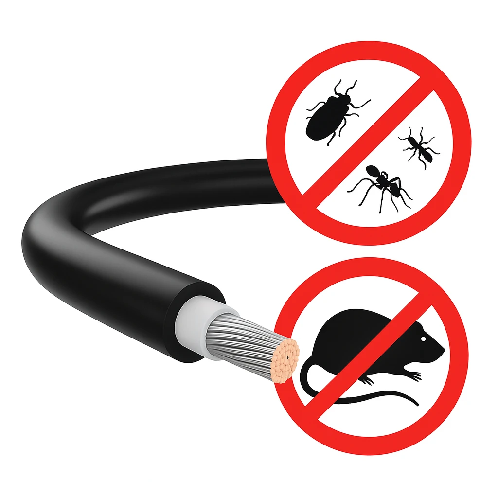 Warum die AR-Version wählen? Beschädigungen der PV-Verkabelung durch Nagetiere sind einer der häufigsten Gründe für Leistungsabfall und kostspielige Reklamationen. Das Kabel mit AR-Zusatz eliminiert dieses Problem an der Wurzel – die Wirksubstanz ist dauerhaft in den Mantel eingebaut, sodass der Schutz während der gesamten Nutzungsdauer von mindestens 25 Jahren wirkt.