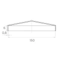 Das Dach ist aus Stahlblech mit einer Stärke von 0,8 mm gefertigt, was hohe mechanische Festigkeit und Verformungsbeständigkeit gewährleistet. Das Produkt wird in rohem Zustand geliefert – es kann lackiert oder mit einer korrosionsbeständigen Beschichtung versehen werden, die farblich an den Zaun angepasst ist, was vollständige Gestaltungsfreiheit bei der Projektrealisierung bietet.