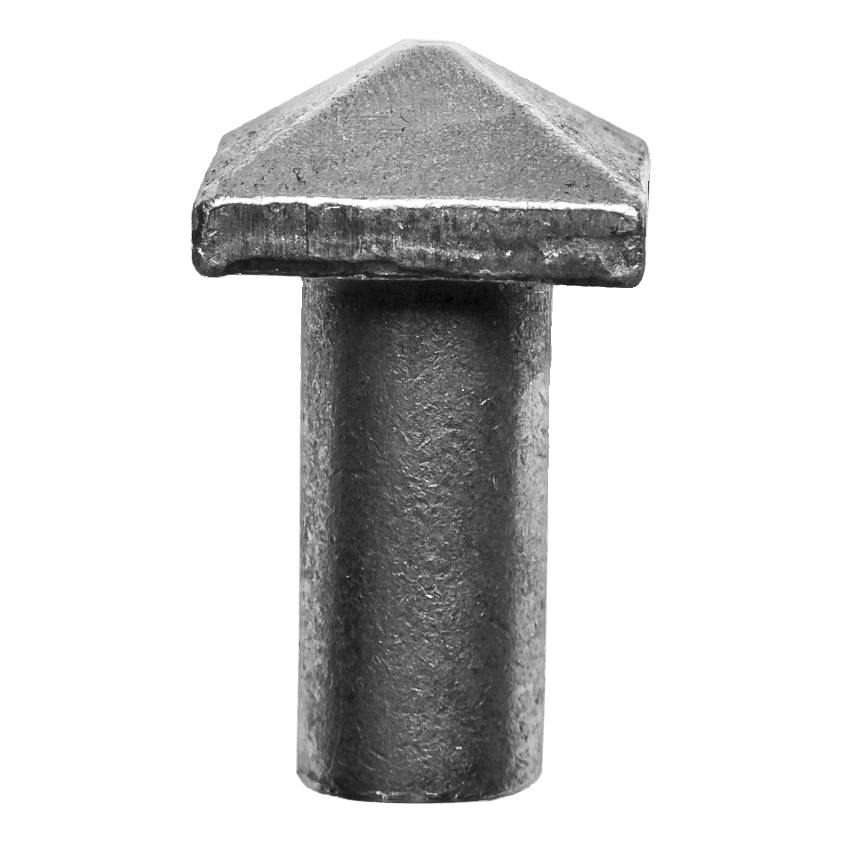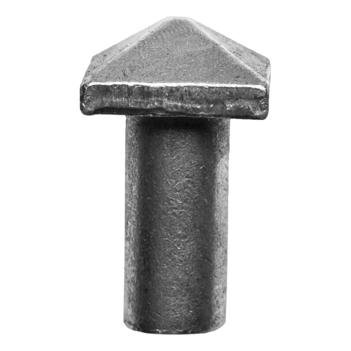 Der Zierniet aus Stahl Postal mit pyramidenförmigem Kopf ist ein dauerhaftes Verbindungselement mit dekorativem Charakter, bestimmt für die unlösbare mechanische Verbindung von Stahlkonstruktionselementen. Dank der klassischen Form des pyramidenförmigen Kopfes fügt er sich perfekt in die Ästhetik von Einfahrtstoren, Pforten, Zäunen und Geländern ein – überall dort, wo nicht nur die Festigkeit der Verbindung, sondern auch der optische Wert zählt.