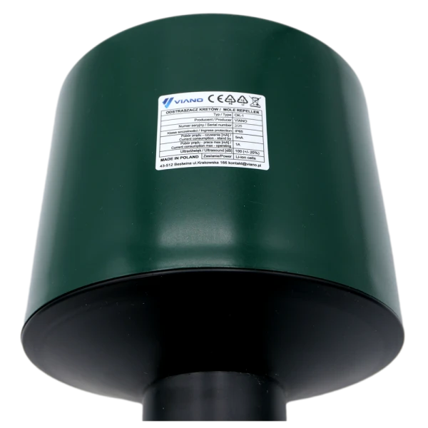 Der Maulwurf- und Wühlmausschreck VIANO OK-1 ist ein professionelles akustisches Gerät aus polnischer Produktion, das Rasenflächen, Gärten und Grünanlagen wirksam vor Maulwürfen und Wühlmäusen schützt. Die Wirkungsreichweite von 1200 m2, der langlebige Li-Ion-Akku und das wasserdichte IP65-Gehäuse machen es zu einer "Installieren-und-Vergessen"-Lösung – ideal für die Betreuung großer Flächen ohne ständige Kontrolle.