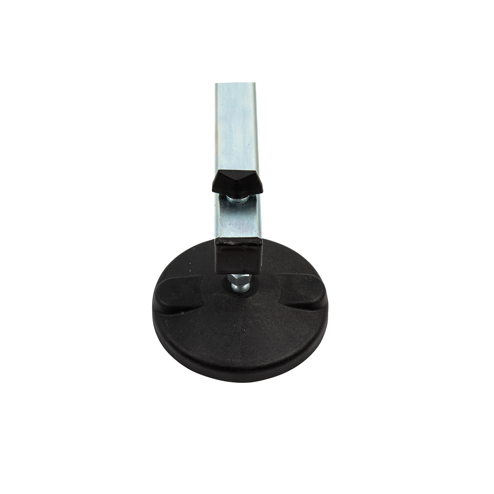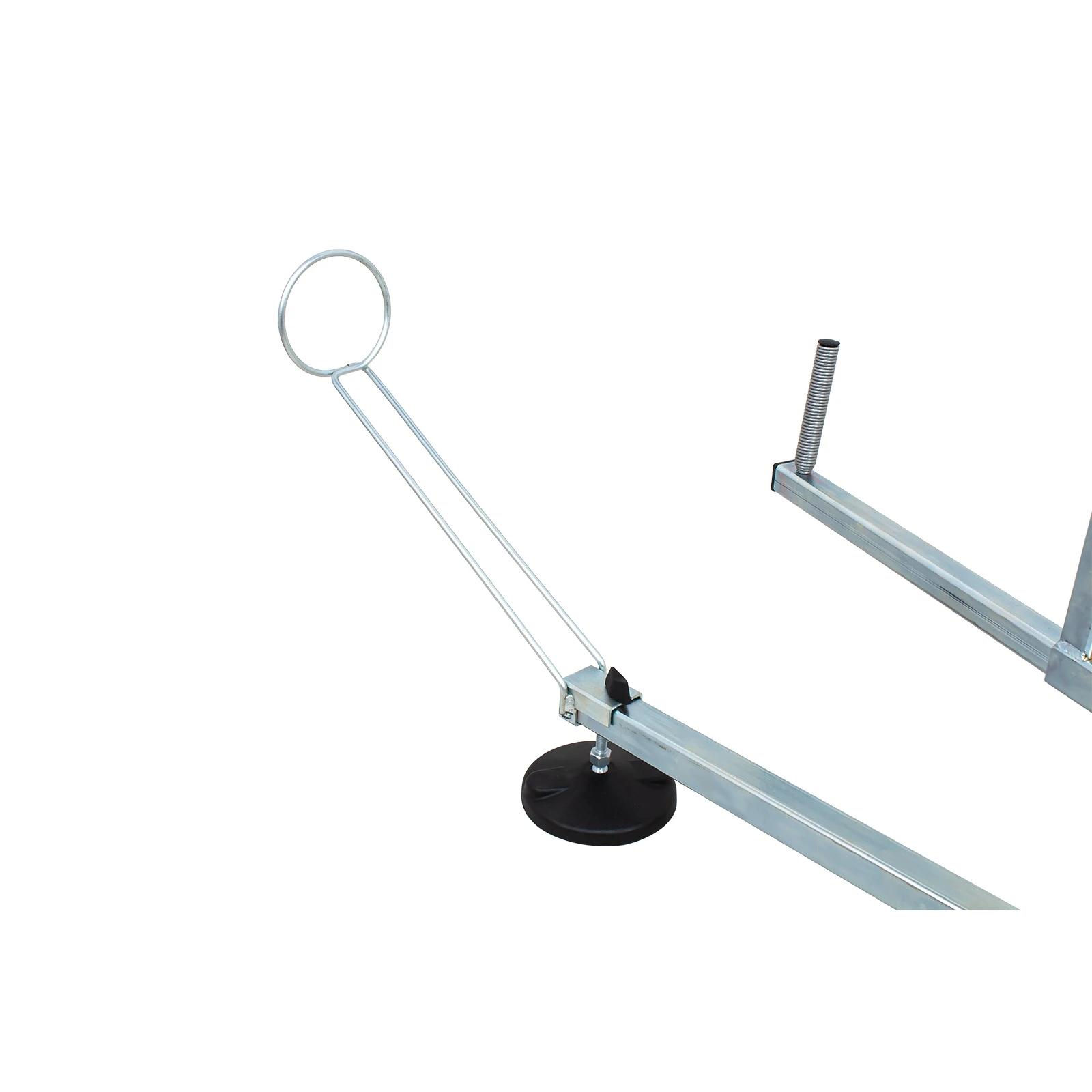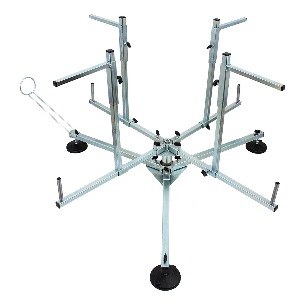 Die Konstruktion besteht aus hochwertigen verzinkten Stahlprofilen, was eine jahrelange Langlebigkeit selbst bei intensivem Einsatz auf Baustellen garantiert. Die stabile Sternbasis mit verstellbaren Füßen sorgt für sicheren Stand auf jedem Untergrund.