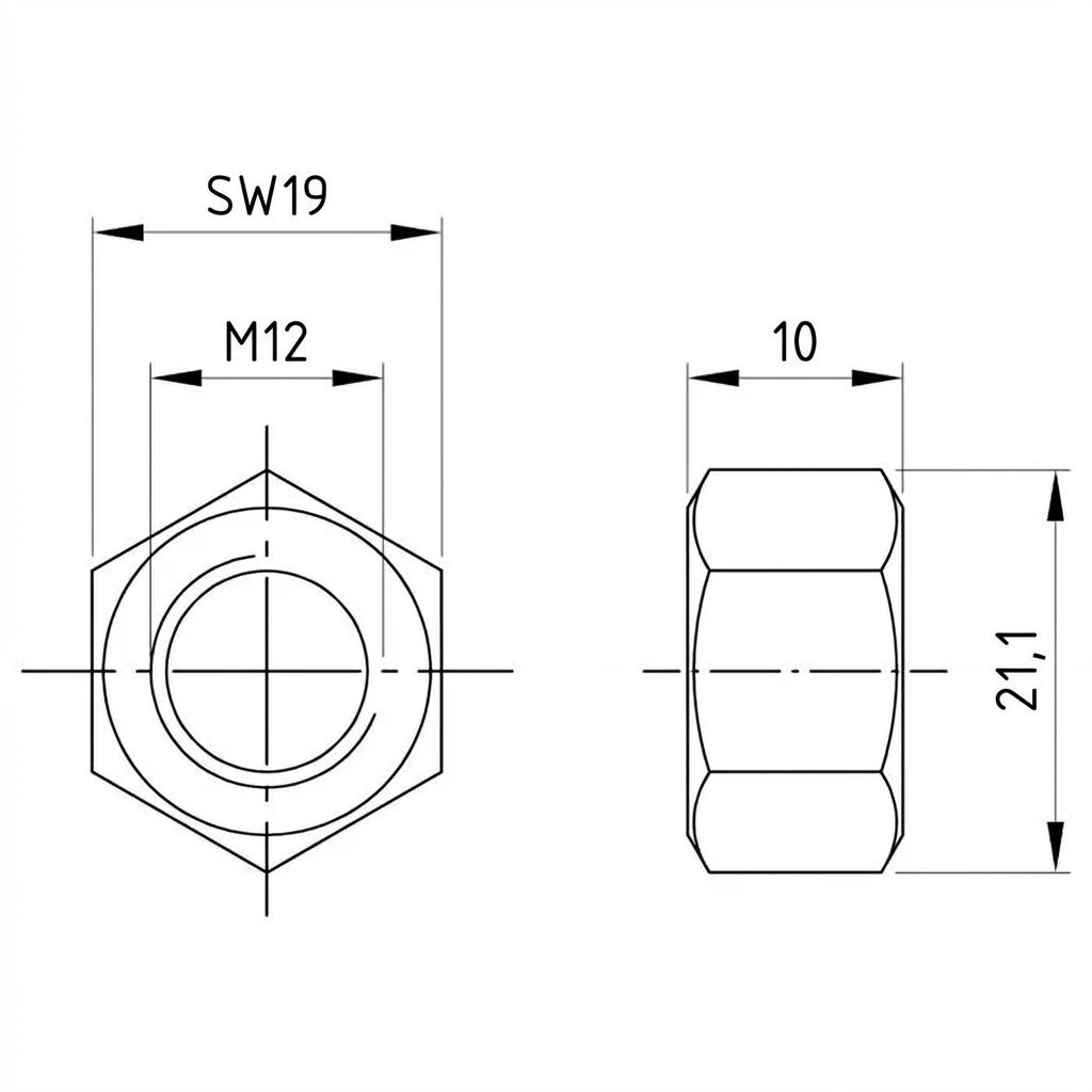 Die Konformität mit der Norm DIN 934 bedeutet standardisierte Sechskantform, die ein einfaches Anziehen mit Standardschlüsseln ermöglicht. Die Mutter ist wiederverwendbar und passt zu allen metrischen M12-Schrauben mit Rechtsgewinde.