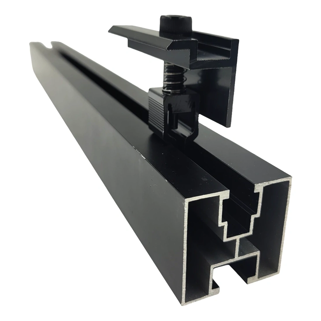 Die Klammer ist aus Aluminium 6060 gefertigt und mit einer schwarzen Pulverbeschichtung versehen, was eine hohe Korrosionsbeständigkeit und eine ästhetische Optik gewährleistet, die zu dunklen PV-Modulen passt. Die schwarze Ausführung wird von Installateuren, die auf ein einheitliches Erscheinungsbild der gesamten Anlage Wert legen, immer häufiger gewählt.