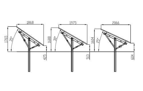 - Flexibilität: Wahl des Neigungswinkels (25°, 30° oder 35°) während der Montage möglich - so können Sie leichte Geländeunterschiede ausgleichen und den Winkel an Ihren Breitengrad anpassen