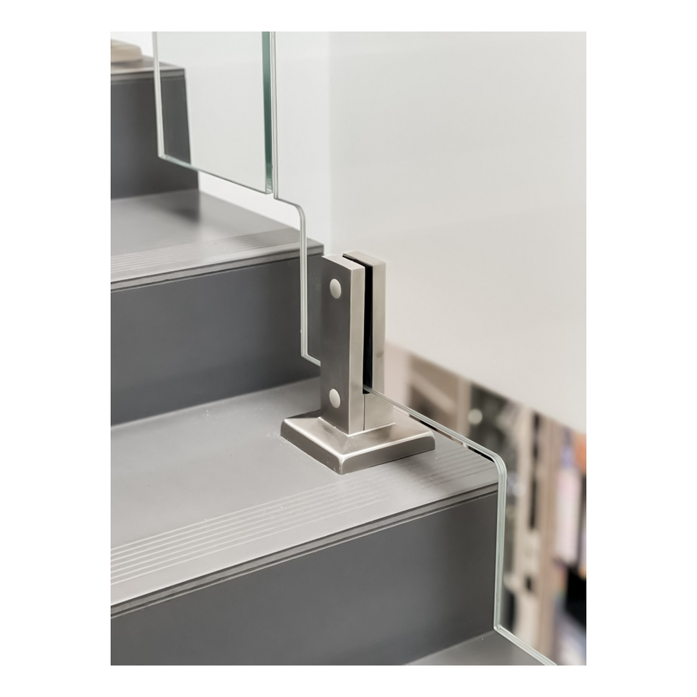 Ideal für Glas-, Treppen- und Terrassengeländer — überall dort, wo Präzision im Detail und professionelles Aussehen der Konstruktion zählt. Das satinierte Finish harmoniert perfekt mit anderen Edelstahlelementen in Geländersystemen.
