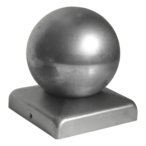 Stahl-Zaunabdeckung mit dekorativer Kugel zur Montage auf Pfosten mit Querschnitt 70×70 mm. Schützt wirkungsvoll den oberen Teil des Pfostens vor Wasser, Schnee und anderen Witterungseinflüssen und verleiht dem Zaun gleichzeitig ein ästhetisches, professionelles Finish. Das Produkt wird im Rohzustand geliefert — Sie können es in jeder beliebigen Farbe lackieren oder beschichten, die zu Ihrem Projekt passt.