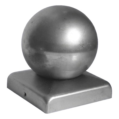 Stahl-Zaunabdeckung mit Zierkugel ist ein langlebiges und ästhetisches Abschlusselement für quadratische Zaunpfosten mit Querschnitt 120×120 mm. Die Kugel mit Durchmesser Ø 100 mm verleiht dem Zaun einen eleganten, dekorativen Charakter und schützt gleichzeitig den oberen Teil des Pfostens vor eindringendem Regenwasser und beschleunigter Zerstörung.