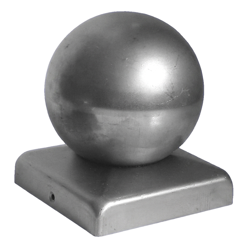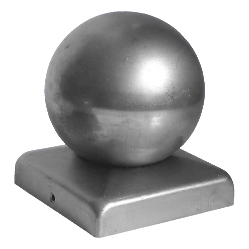 Stahl-Zaunkappe mit Kugel 50×50 mm / ø 60 mm – roh