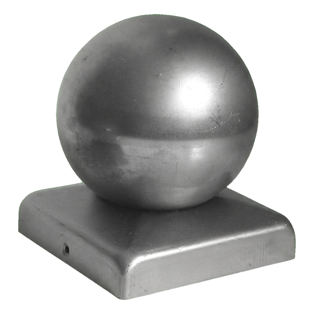 Stahl-Zaunkappe mit Kugel 70×70 mm / ø 60 mm – roh