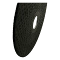 Die Scheibe verfügt über eine Fasernetzverstärkung, die auf der Rückseite sichtbar ist, was ein Zerbrechen der Scheibe bei hohen Drehzahlen verhindert und sichere Nutzung auch bei intensiver Seitenbelastung gewährleistet. Das Kunstharz-Bindemittel bietet Beständigkeit gegen hohe Temperaturen, die beim Schneiden entstehen, und die Korund-Schleifkörner legen sich während der Abnutzung selbständig frei – wodurch die konstante Schneidaggressivität über die gesamte Nutzungsdauer erhalten bleibt.