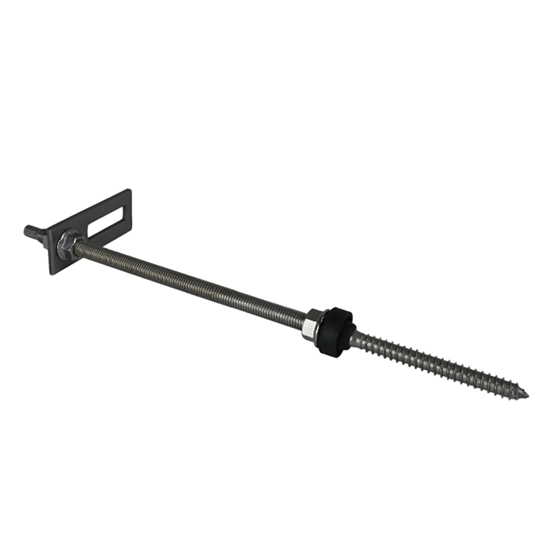 Stockschraube M10x300, ein vielseitiges und langlebiges Produkt, das für Photovoltaikanlagen entwickelt wurde. Die Stockschraube ist für die Montage auf Dachplatten, Blechen, Schindeln oder Teerpappe vorgesehen. Dieses Produkt verfügt über eine Stockschraube mit unterschiedlichen Gewinden an beiden Enden. Das eine Ende ist für die einfache Befestigung an hölzernen Dachkonstruktionen vorgesehen, während das andere Ende die sichere Montage von Adaptern mit Flanschmuttern ermöglicht.