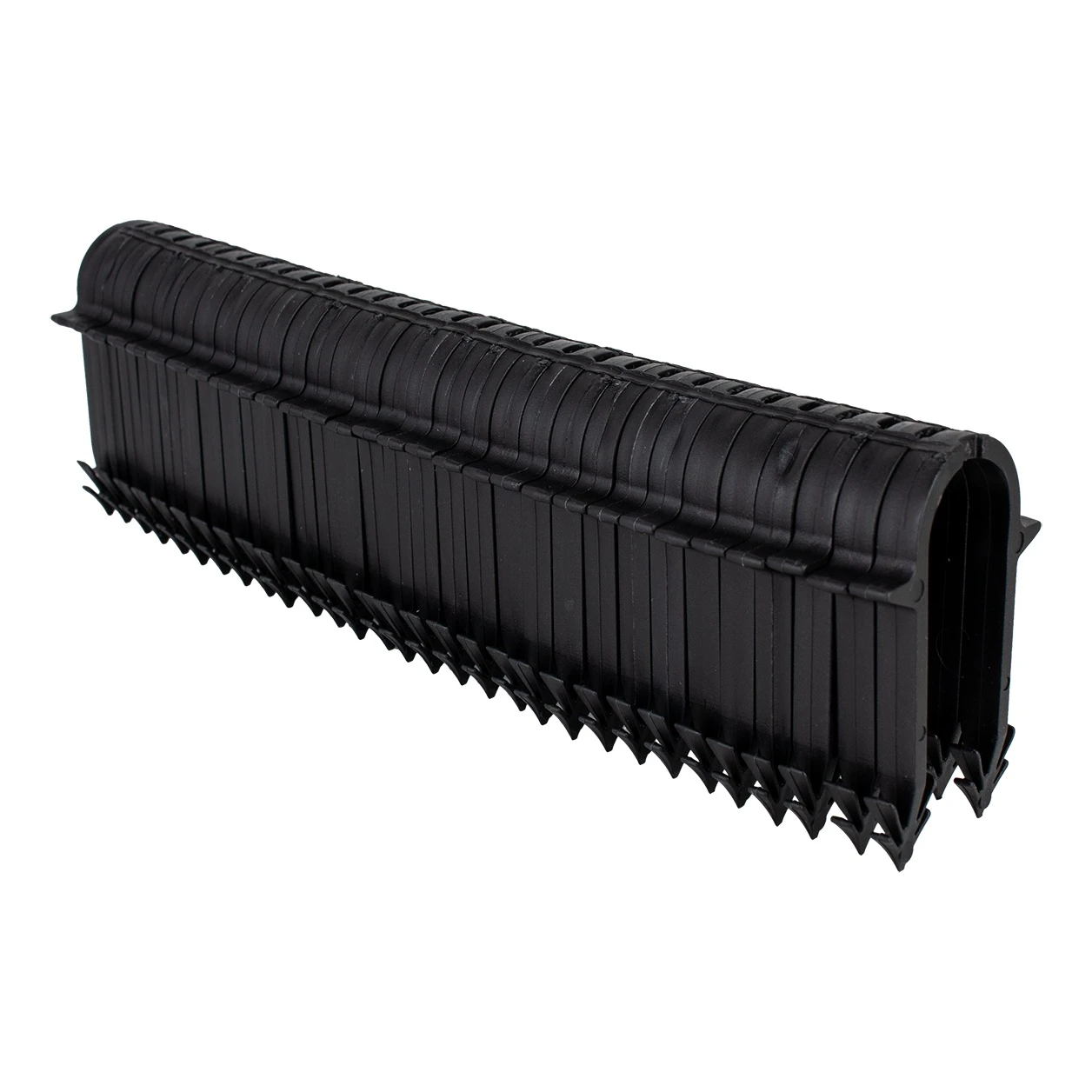 Material und Langlebigkeit – die Klammer besteht aus reinem Polypropylen (PP) in schwarzer Farbe. Polypropylen zeichnet sich durch hervorragende Temperaturbeständigkeit und Elastizität aus, wodurch der Clip beim Tackerschlag nicht bricht, selbst bei niedrigen Temperaturen auf der Baustelle.