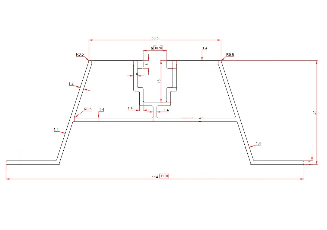 Die Standardlänge der trapezförmigen Brücke beträgt 330 mm. Die Schraubenlöcher werden bei der Montage des Profils auf dem Dach selbst angebracht.