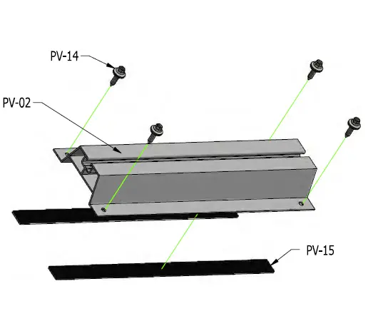 Das Aluminium-Trapezprofil oder die sogenannte Trapezbrücke ermöglicht die direkte Befestigung von Paneelen auf Trapezblechen. Es eignet sich für die Befestigung von Photovoltaikmodulen mit Mittel- und Endklemmen. Die Klemmen werden mit Innensechskantschrauben und Vierkantmuttern am oberen Kanal der Montageschiene befestigt. Die 40 mm hohe Schiene sorgt für einen freien Luftstrom unter dem Paneel, was eine natürliche Kühlung und die Trennung des Paneels von der beheizten Dachfläche ermöglicht.