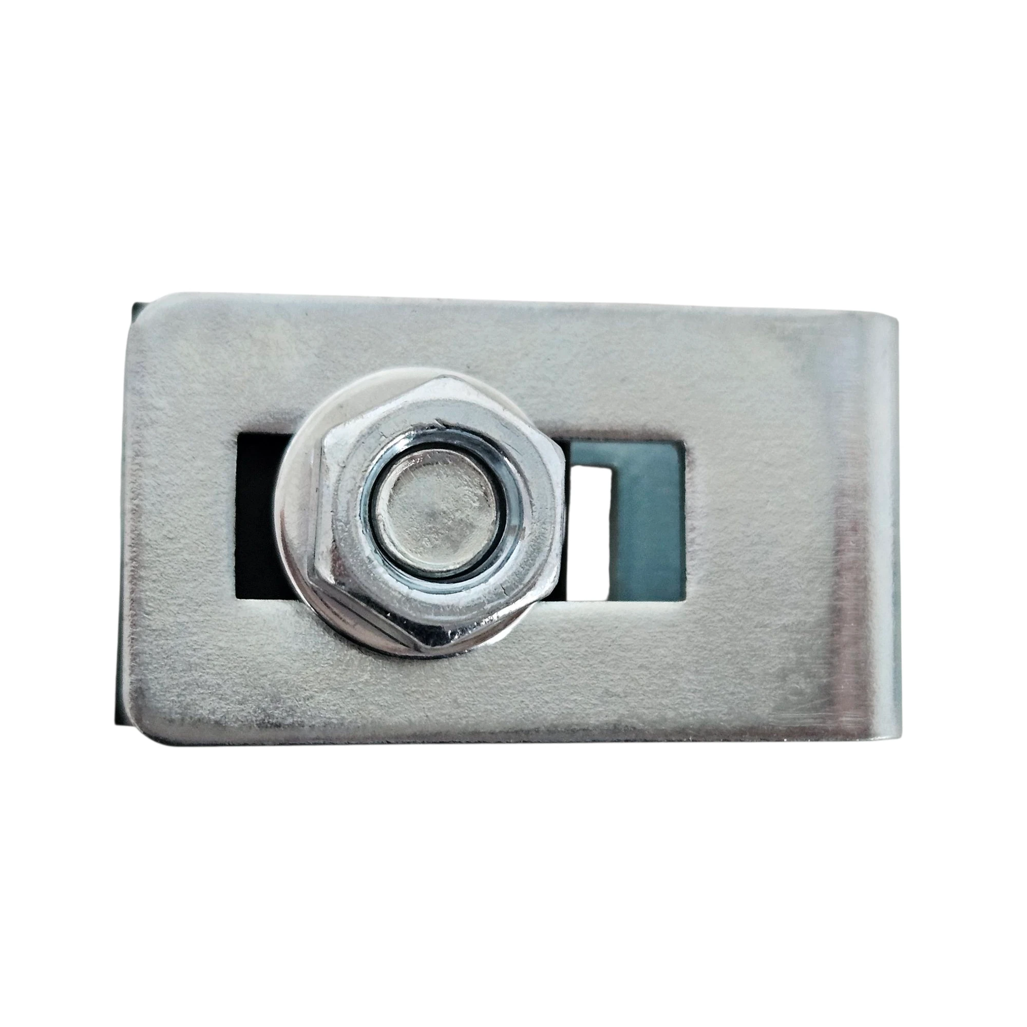Gefertigt aus hochwertigem verzinktem Stahl, beständig gegen Witterungseinflüsse und mechanische Beschädigungen. Dank des bohnenförmigen Montagelochs ermöglicht sie eine Positionsregulierung.