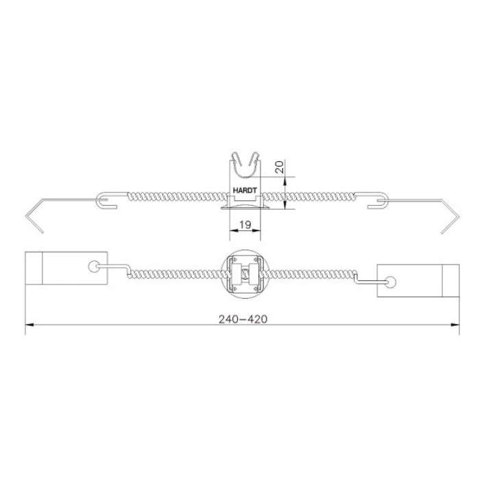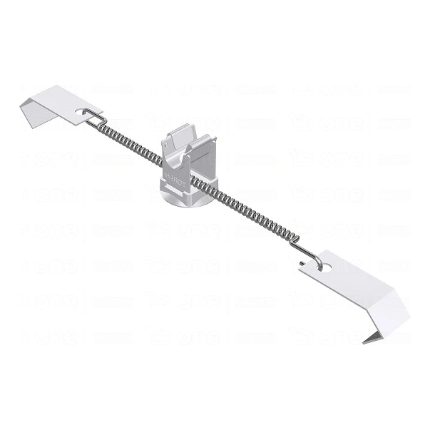 Die gefederten Arme gewährleisten eine sichere und stabile Befestigung auf dem Dachfirst, während das zentrale Element mit U-Halterung den Blitzschutzdraht mit einem Durchmesser von Ø8 mm sicher fixiert. Die Halterhöhe beträgt lediglich H=20 mm, was eine diskrete Montage ermöglicht, ohne die Dachästhetik zu beeinträchtigen.