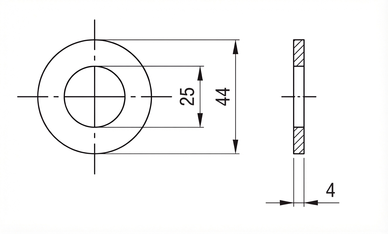 - Norm: DIN 125 (Ersatz für ISO 7089/7090)