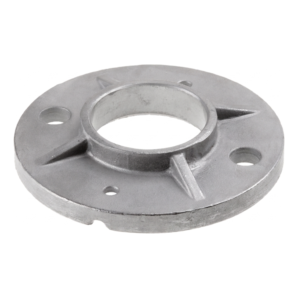 Verstärkte Geländerpfostenbasis zum Schweißen für die dauerhafte Montage von runden Pfosten mit einem Durchmesser von 48,3 mm. Dank vier Verstärkungsrippen gewährleistet sie hohe Stabilität und Festigkeit der gesamten Geländerkonstruktion und eliminiert das Risiko von Spiel oder Verformungen an der Verbindungsstelle zwischen Pfosten und Untergrund.
