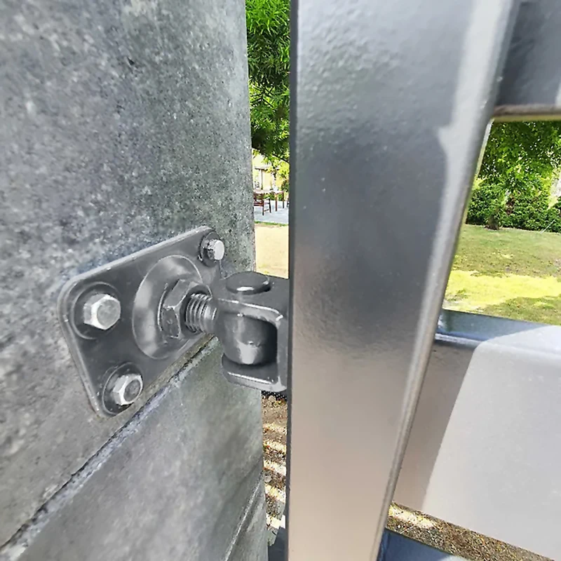 Das verstellbare Scharnier mit rechteckigem Schild ist ein robustes Montageelement für die Installation von Gartentoren. Dank des M16-Gewindes und der Möglichkeit zur Einstellung jederzeit nach Abschluss der Montage ermöglicht das Scharnier eine präzise Anpassung der Torflügelstellung — auch bei Durchhang der Konstruktion oder thermischen Verformungen durch extreme Witterungsbedingungen.