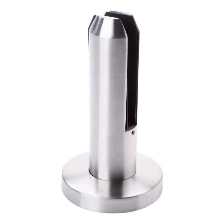 Vertikaler Glashalter vom Typ Spigot mit runder Basis — zuverlässiges Befestigungselement für Glasgeländer und Glasscheiben. Gefertigt aus Edelstahl AISI 304 mit Satinoberfläche bietet er dauerhaften Korrosionsschutz für den Einsatz im Innen- und Außenbereich. Der Halter wird direkt mit Schrauben am Untergrund befestigt und sorgt für Stabilität und Sicherheit der gesamten Glaskonstruktion.