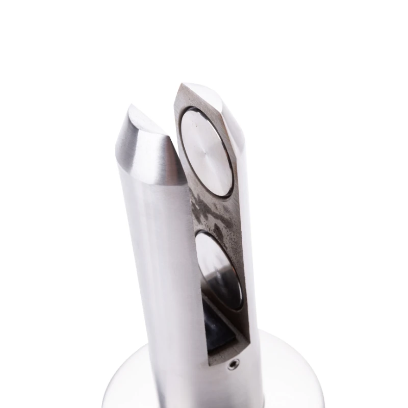 Der obere Teil des Halters ist mit einem geschlitzten Schaft und zwei Klemmbacken ausgestattet, zwischen denen die Glasscheibe eingesetzt wird. Im Inneren des Schlitzes befinden sich Gummidichtungen, die das Glas sicher halten und vor Kratzern schützen. Dadurch überträgt die Konstruktion Lasten zuverlässig und gewährleistet die Sicherheit im Gebrauch.