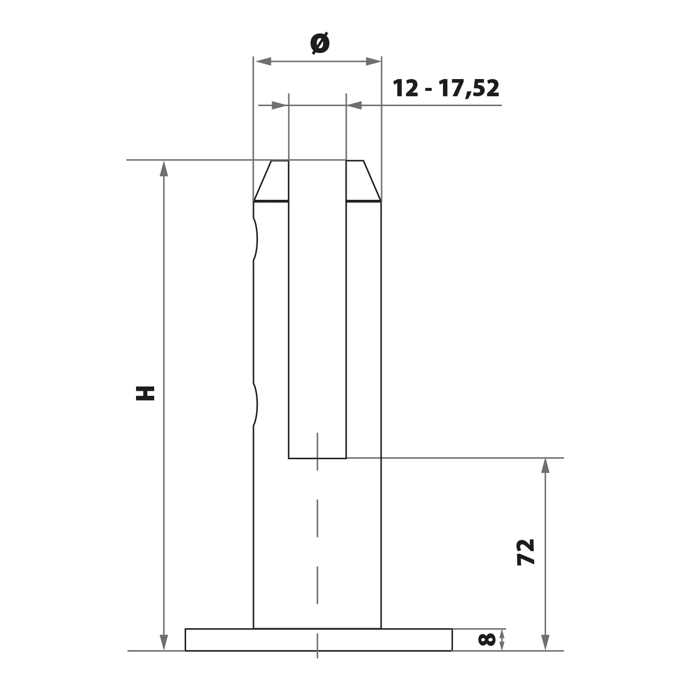 Vertikale Glashalterung 12-17,52 mm Spigot fi 48 mm H=182 mm AISI 304 Satin