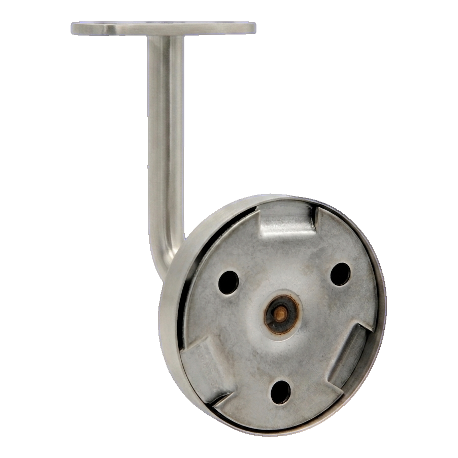 Wandhalterung für flachen Handlauf mit Rosette aus Edelstahl AISI 304 für die Wandmontage. Das Produkt verbindet Materialhaltbarkeit mit eleganter, satinierter Oberfläche — perfekt geeignet für moderne Gestaltung von Treppenhäusern, Ballustraden und Handläufen in öffentlichen Gebäuden, Büros sowie Wohnobjekten.